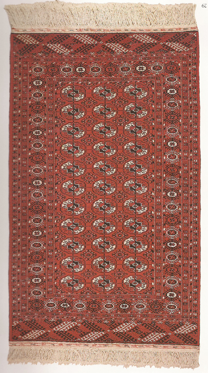 pattern with some shade of red as the field color. Today, they usually have the Tekke or Yomud designs and are