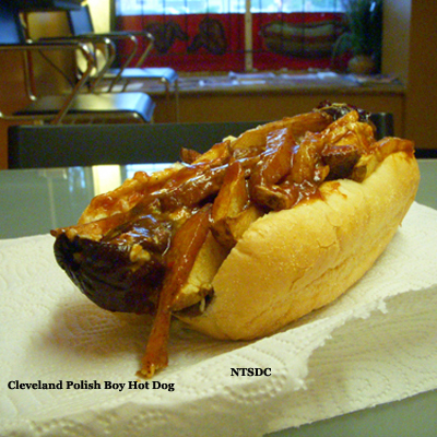 The Cleveland Polish Boy is commonly found in carts around town and is a